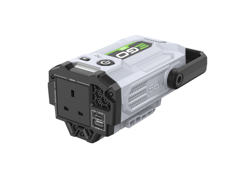De Nexus Escape werkt met elke EGO ARC Lithium™ accu. Met een wisselstroomstopcontact en twee USB-poorten biedt hij een flexibele oplossing om mobieltjes, laptops, camera's, lampen en andere elektrische apparaten tot maximaal 500 Watt op te laden.